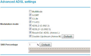 One of the tweaks included in the DGTeam firmware that interested me was the signal to noise (SNR) percentage adjustment. Put simply, SNR compares the level of a desired signal (in my case the ADSL signal) to the level of background noise on the telephone line.