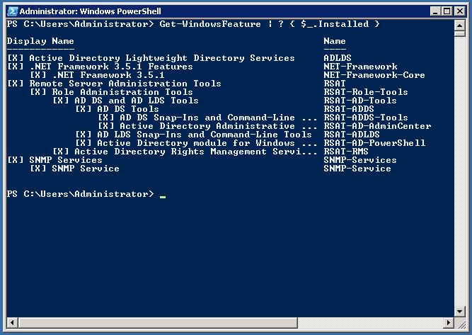 PS> Get-WindowsFeature | ? { $_.Installed }