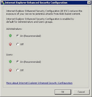 Another one to file in the "Yes, done that before, but I can't remember how" pile. Probably because it is so easy to do has some bearing on not being able to remember how... Anyway, here is how to disable Internet Explorer Enhanced Security Configuration (aka IE ESC) on Windows 2003 and 2008 Servers.