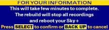 Press 7 to start a Sky+ Planner Rebuild. The following dialogue will appear: