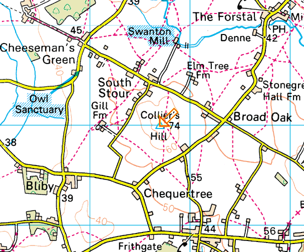 Yeah OK, it's actually on top of Collier's Hill located about halfway between Kingsnorth and Aldington, but hey, it's a 100% 'Kosher' trig point!